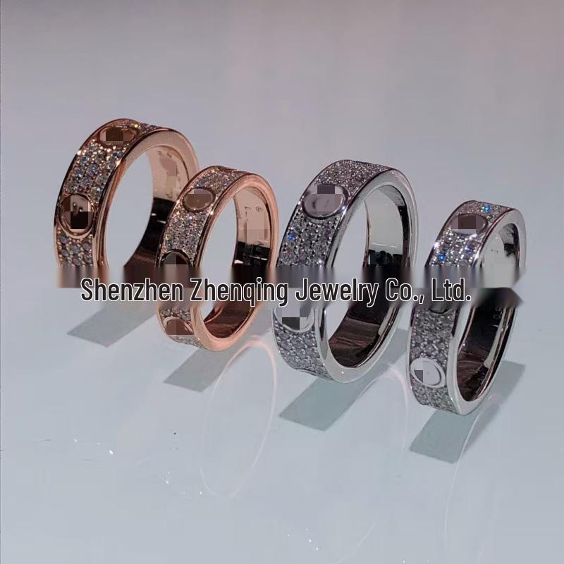 Hochwertige 18K Gold-Plattierte Sterling Silber Partnerringe mit Drei Reihen Diamanten - Leichter Luxus Design in Breiten und Schmalen Ausführungen.