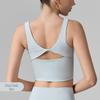 Damen Sport-Tanktop mit Schmetterlingsrücken und stoßfestem BH, festen Cups, ideal für Pilates und Yoga.
