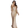 Damen Ballkleid, Etuikleid, Slim Fit, V-Ausschnitt, einfarbig, Pailletten, Fischschwanz-Saum, Abendkleid, Cocktailparty, Maxikleid