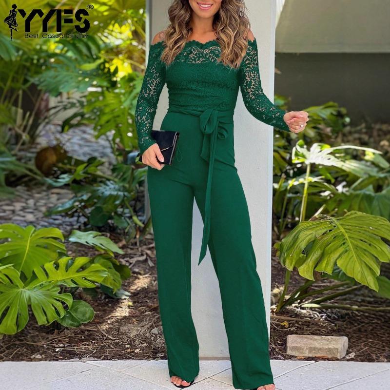 YYFS Women's Fashion Casual Spring Fall Solid Color Print Long Sleeve V-Neck High Waist Trousers Jumpsuits & Rompers