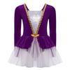Mädchen Eiskunstlauf Performance Kleid Langarm Glitzernde Pailletten Patchwork Samt Tüllkleid Eingearbeiteter Slip Ballett Kostüm