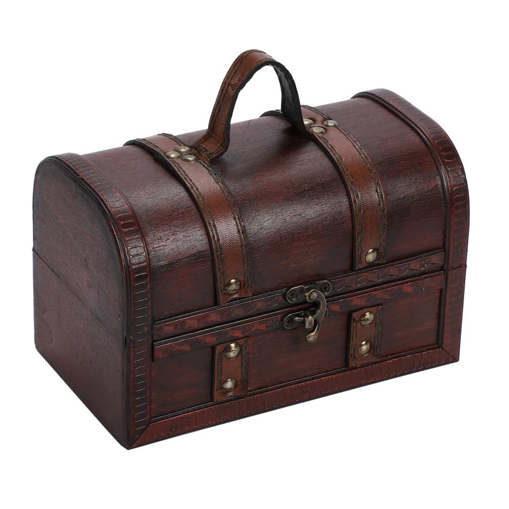 R_planning Retro Schatzkiste, Antike Holz-Aufbewahrungsbox, Gewölbt mit Griffen