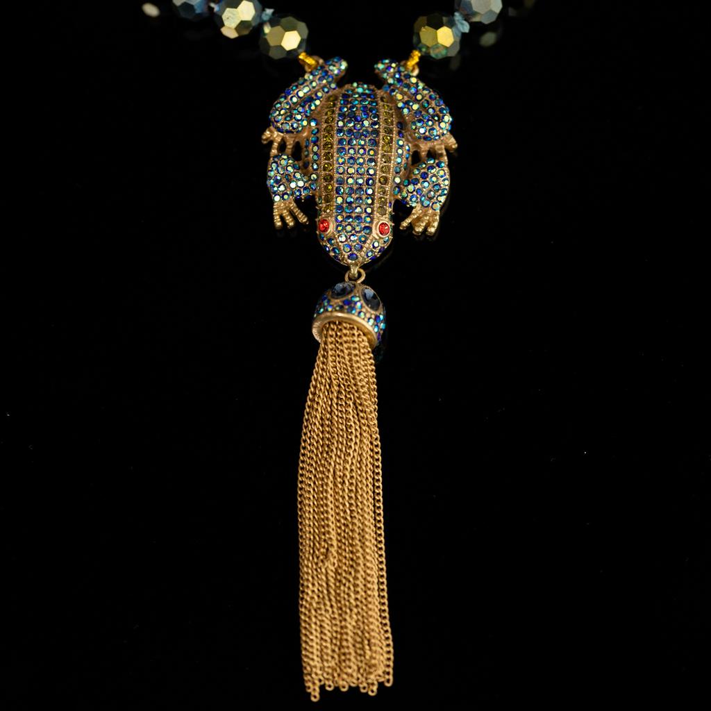 Mittelalterlich Vintage Kupferlegierung Hohes Gefühl Designer Blau Kleines Tier Frosch Voll Diamant Quaste Halskette Weiblich