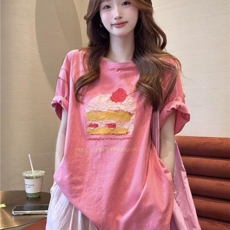 Damen Oversized Grafikprint T-Shirt Kurzarm Lässig Rosa Rundhals Locker Oberteil