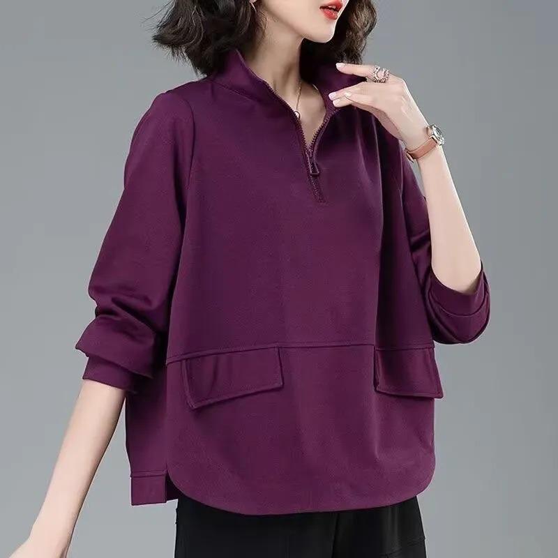Reißverschluss Sweatshirt Damen Locker Falsche Tasche Oberteil Lässig Revers Einfarbig Vielseitig Unterhemd