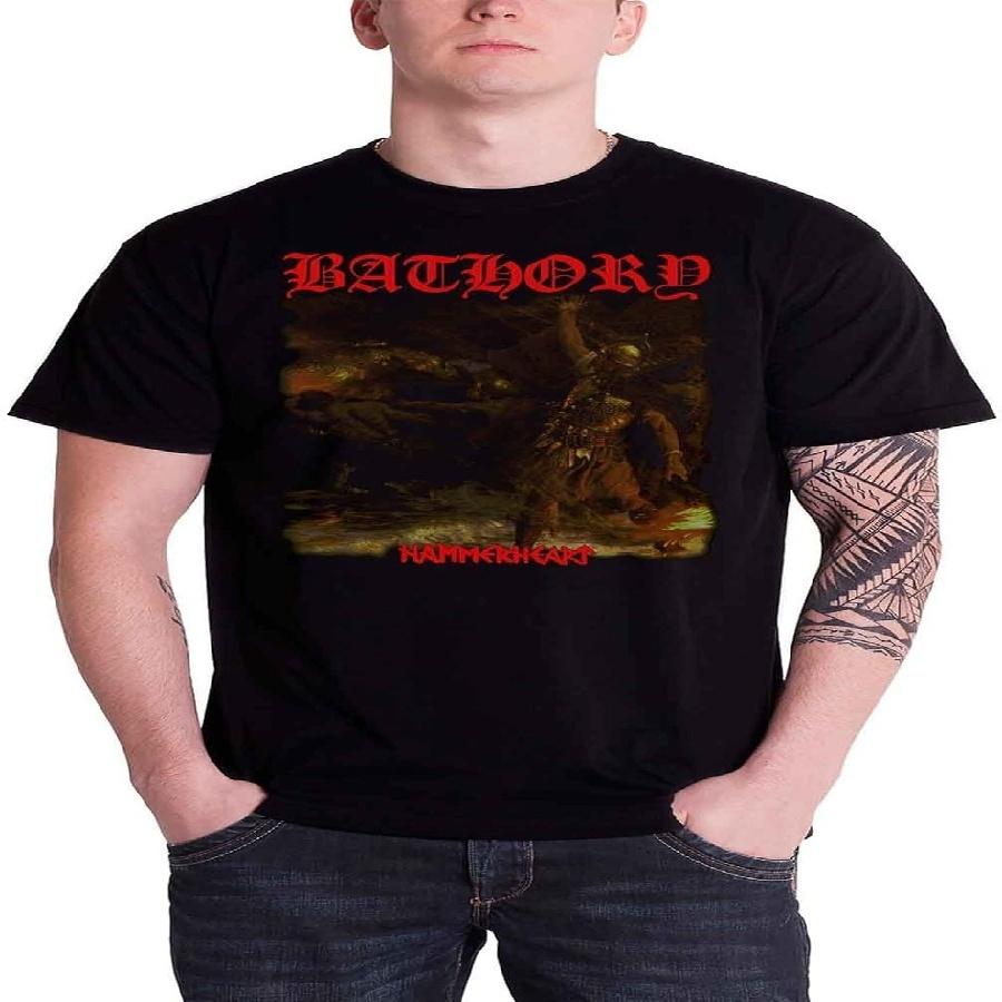 Bathory Herren T-Shirt Schwarzes Hammer Herz Soldat Tod Band Logo Offiziell(1)