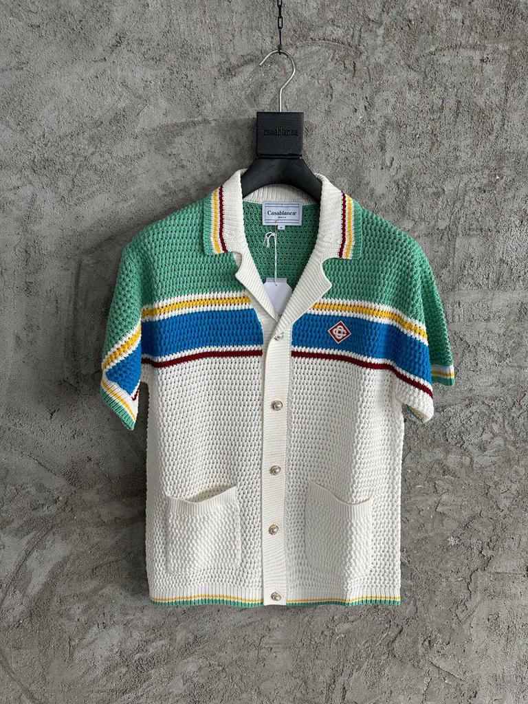 Erleben Sie die perfekte Mischung aus Komfort und Stil mit diesem handgestrickten gestreiften Strickjackenpullover. Hergestellt aus reiner Baumwolle, verfügt es über einen zeitlosen Rundhalsausschnitt und kurze Ärmel, was es zu einer vielseitigen Ergänzung für jede Garderobe macht.. Seine Standarddicke sorgt dafür, dass es für alle Jahreszeiten geeignet ist und sowohl Wärme als auch Atmungsaktivität bietet.. Genießen Sie die natürliche Weichheit und Strapazierfähigkeit von Baumwolle für ein gemütliches und schickes Aussehen.