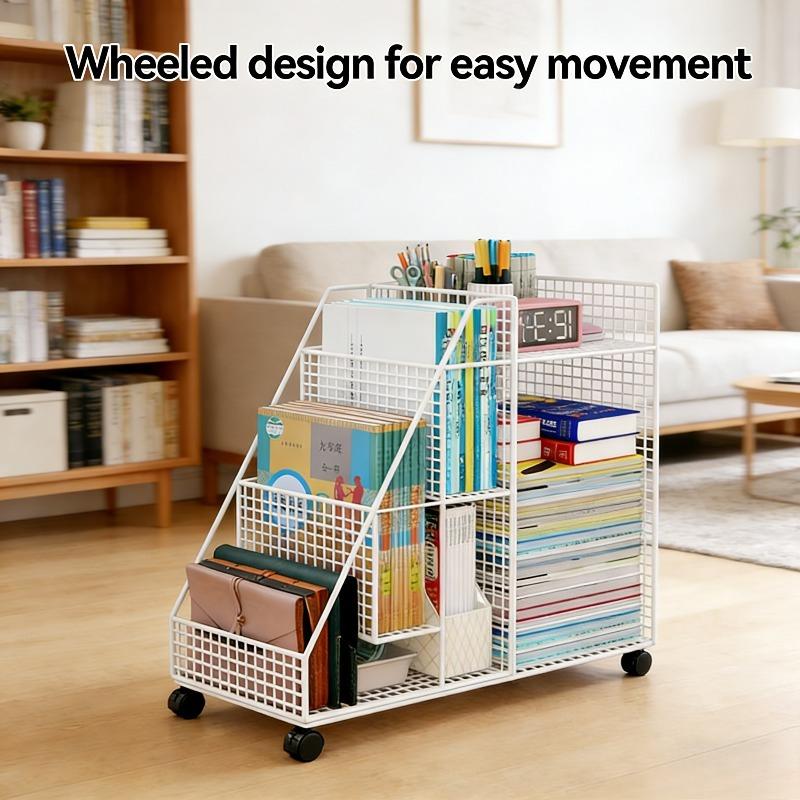 Bodenstehender Bücherregal-Aufbewahrungsständer Buchaufbewahrungsbox Rollbar Einfaches Bücherregal Mehrschichtige Klassifizierung Raumnutzung
