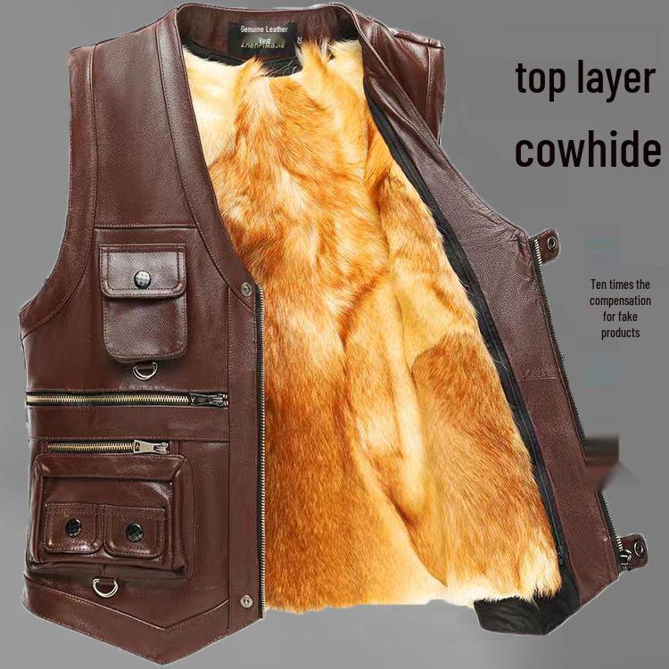 Entdecken Sie die perfekte Mischung aus Stil und Funktionalität mit dieser Herren-West in Übergröße, die Ihre Freizeitgarderobe für mehrere Jahreszeiten perfekt ergänzt.. Hergestellt aus echtem Rindsleder, bietet es eine schlanke und schmale Passform, ideal für einen gepflegten Look.. Die Weste verfügt über einen modernen V-Ausschnitt und einen praktischen Reißverschluss, der das Anziehen erleichtert.. Seine isolierende Dicke spendet Wärme, ohne den Komfort zu beeinträchtigen.. Das Plüschmaterial und das gestreifte Muster verleihen einen Hauch von Raffinesse, während mehrere Taschen praktische Aufbewahrungslösungen bieten.. Perfekt zur Aufwertung jedes Outfits, von lässigen Ausflügen bis hin zu eleganteren Zusammenkünften.
