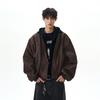Herren Retro Zweiteilige Leder Fliegerjacke - Cleanfit Scheunenstil Locker Arbeitskleidung