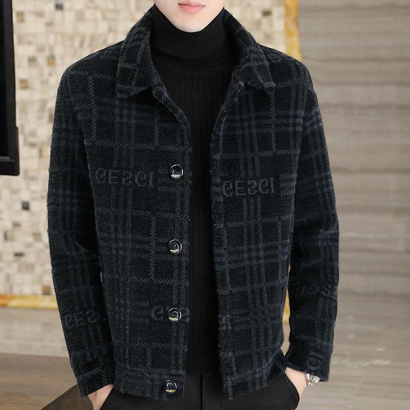 Herren Dicke Woll-Windbreaker-Jacke - Schwarz (Frühling/Herbst/Winter)