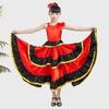 Mädchen Farbblock Tanzkleid Asymmetrische Schulter Stufenrüschen Weiter Saum Flamenco Kostüm Kopfbedeckung