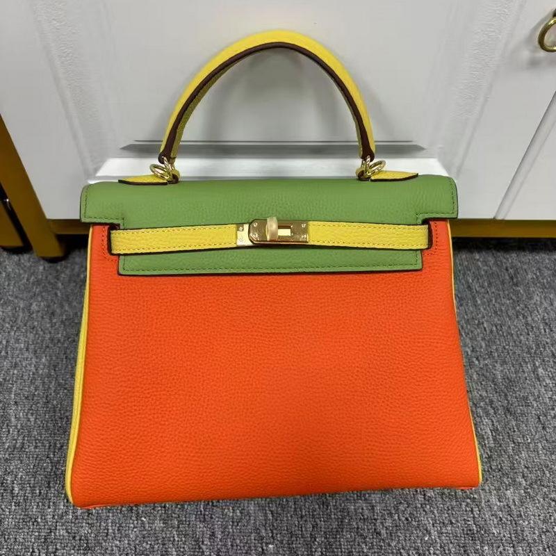 2026 neue Leder-Damenhandtasche 25CM dreifarbig zweite Generation Kelly-Tasche High-End-Gefühl tragbar vielseitig Schulter-Umhängetasche