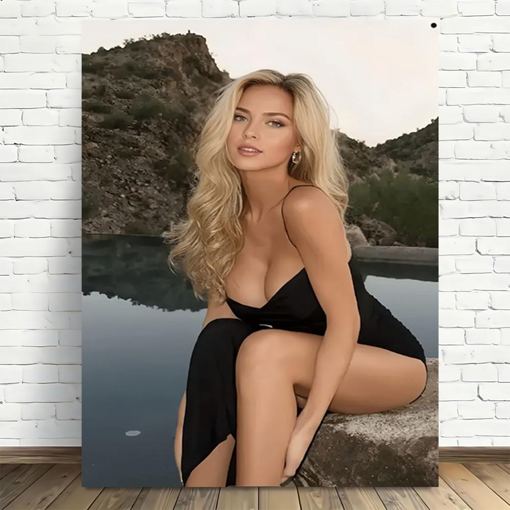 Vintage Frau am See Leinwand Wandkunst Premium Holzrahmen Schwarzes Kleid Poster für Wohnzimmer Schlafzimmer Dekoration