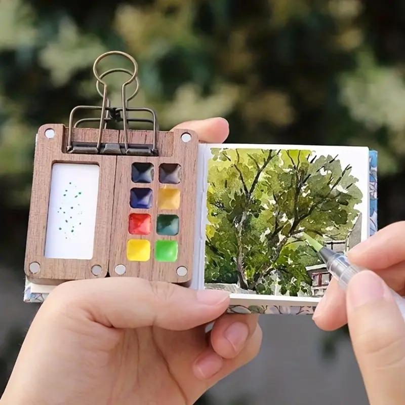 Leere Holz Aquarellpalette Tragbare Mini Reise Aquarell Acrylfarben Box Quadratische Tablettbox Kunstmalerei Kunstbedarf