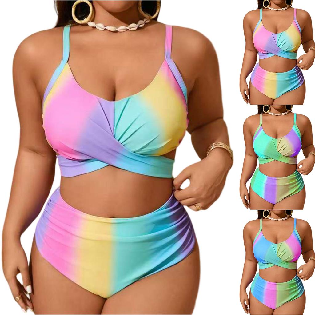 Zweiteiliger Bikini für Damen in Übergröße, Badeanzug mit Schlitz