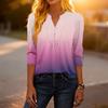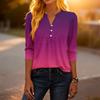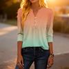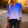Modisches lässiges Damen-T-Shirt-Top mit Farbblock-Gradienten-Print, V-Ausschnitt, Knopfleiste und Dreiviertelärmeln