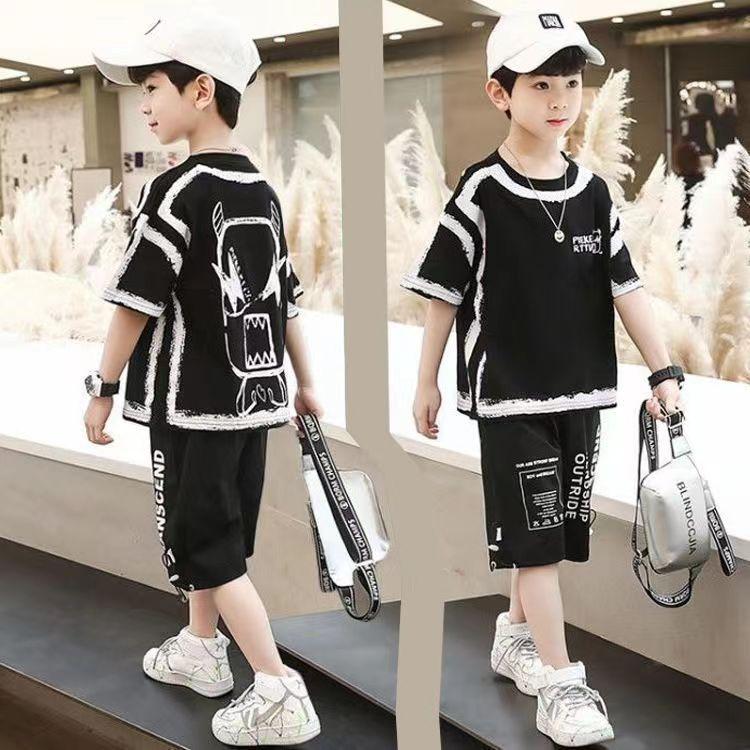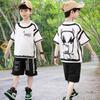 Summer Sports Set Casual Boys Cotton Contrast Alphabet Graffiti T-Shirt Top+Shorts Pant Set School Kids Tracksuit Child Two Piece Set