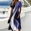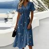 Damen-Kleid mit Blumenmuster, lässig und modisch, kurzärmelig, V-Ausschnitt