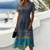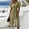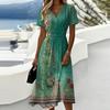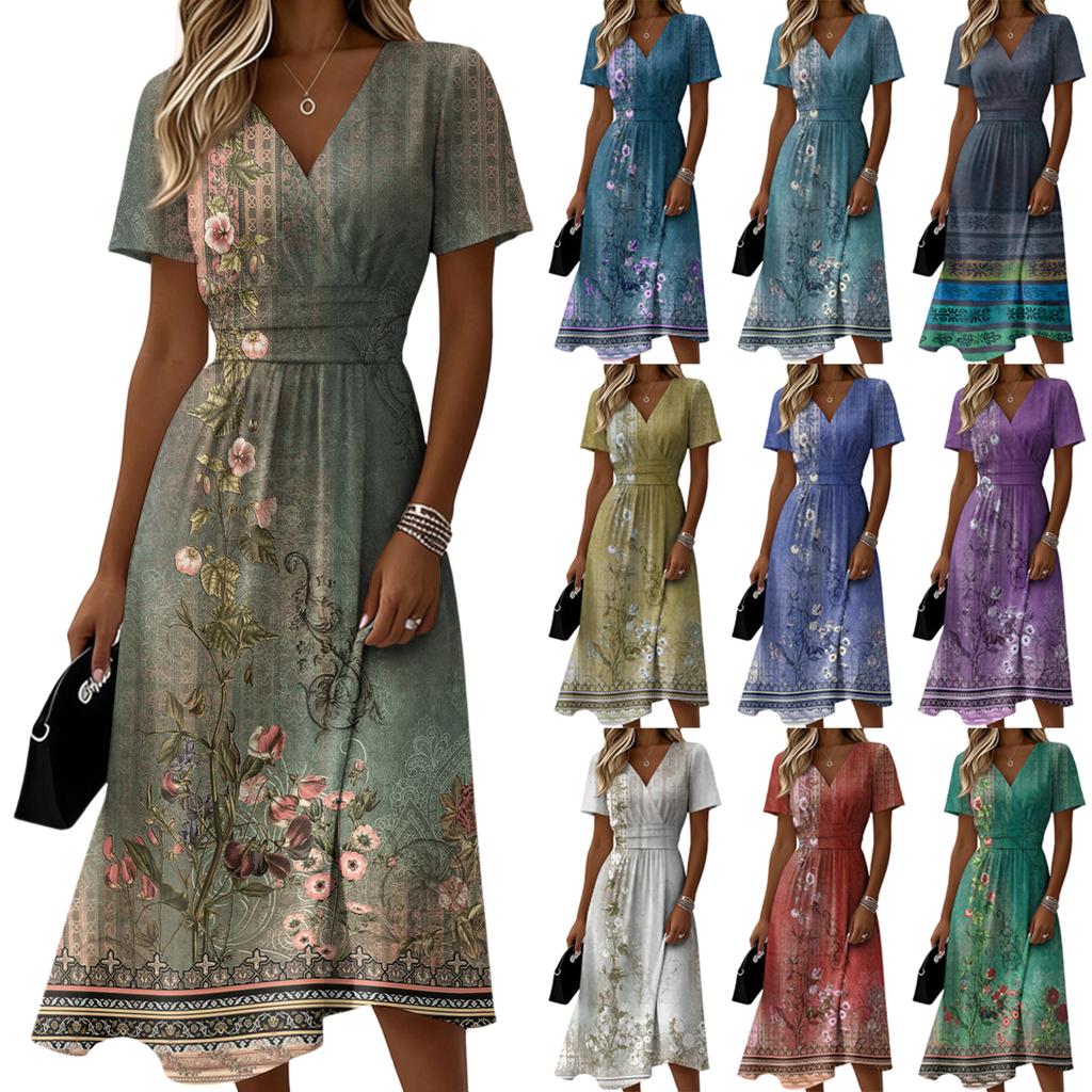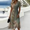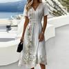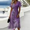 Damen-Kleid mit Blumenmuster, lässig und modisch, kurzärmelig, V-Ausschnitt
