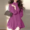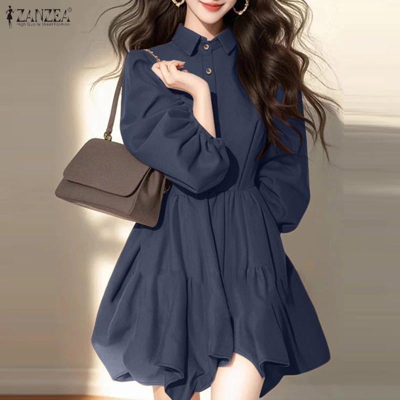 ZANZEA Damen Lässig Umlegekragen Elegant Langarm Kleid