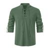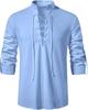 Herren Stehkragen Langarmhemd Baumwolle Henleys Shirt Hippie Lässig Strandhemd