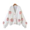 Damen Strickpullover Mantel Cardigan Lockeres Design Süßes Erdbeer Top