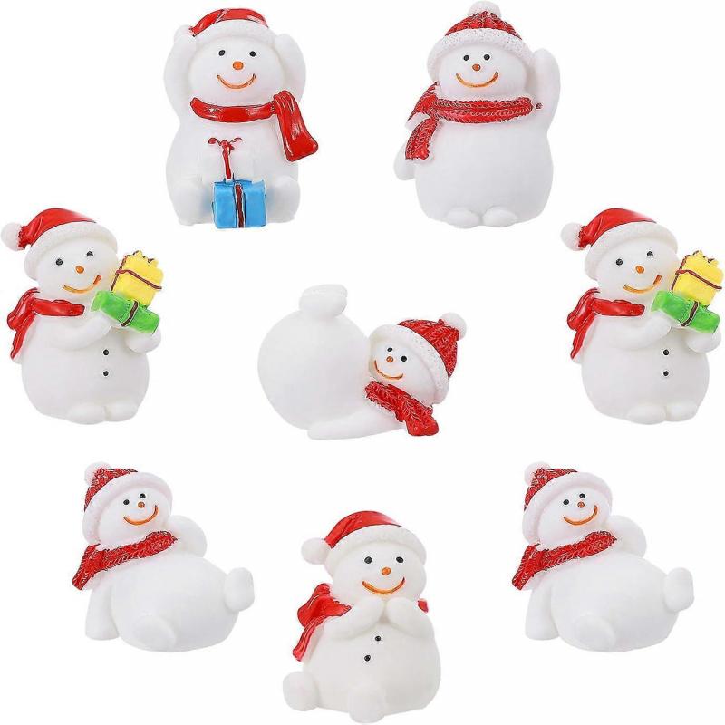 8pcs Mini Fairy Snowman Figurine Miniature Snowman Figurines Resin Snowman Ornament Xmas Party Favors for Christmas Party Desktop Decoration -Yx