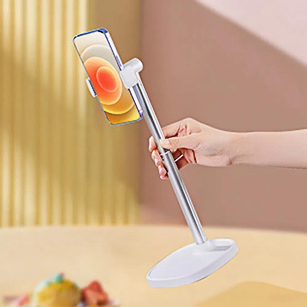 Adjustable Height Telescopic Phone Stand Stable Base Portable Desktop Phone Holder Metal 360° Rotate Mobile Phone Bracket