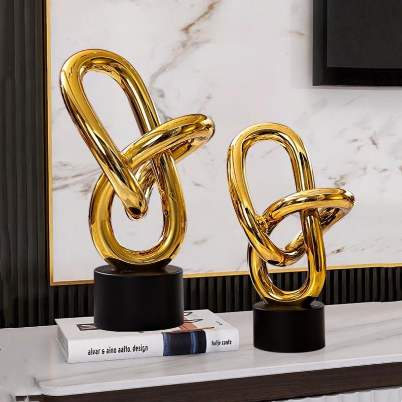 Harzhandwerk Goldene Ringe Ketten Geometrisch gewickelte Skulptur Hohlplastiken Dekorative Figuren Heimdekorationszubehör