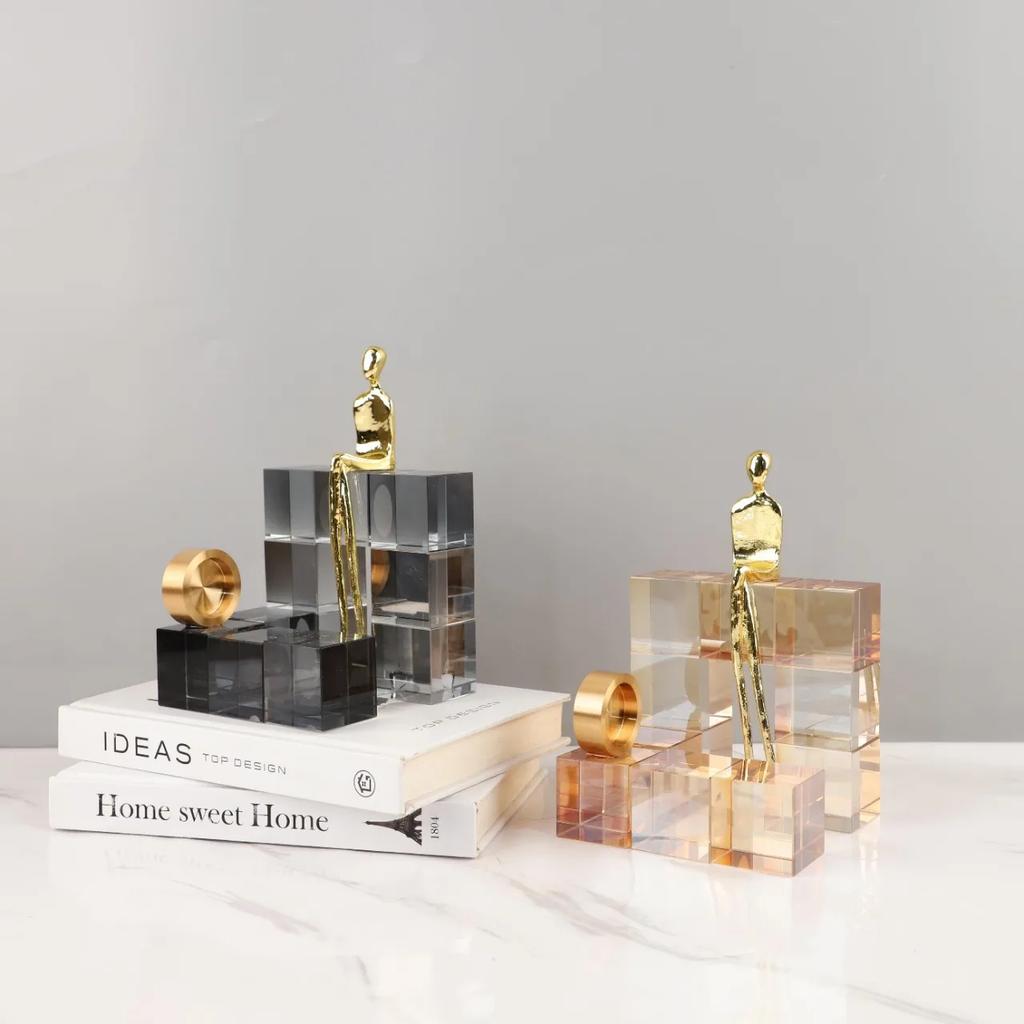 Glass Craft Geometric Stair Crystal Ornament Metal Gold Art Sculpture Metal Decorative Figurines Home Decoration Accessories