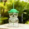 2026 Neu im Angebot Bär Glasbecher mit Strohhalm Kaffeetasse Niedliche Cartoon Kreative Glas Saftbecher Teetasse Trinkgeschirr