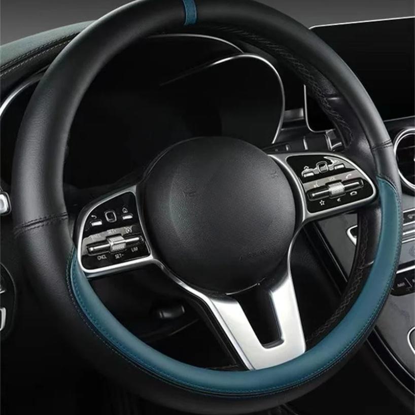 Full Leather Universal Car Steering Wheel Cover Breathable Anti Slip Car Decoration 37-38cm Steering Wheel Cover Accessories