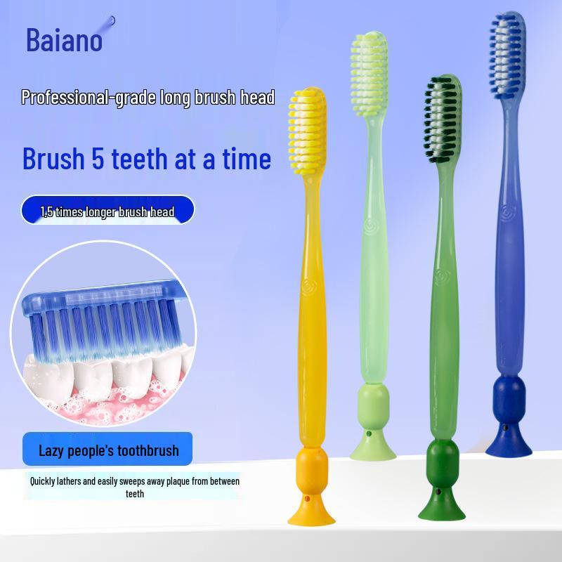 Beiyano Long Head Soft Bristle Toothbrush for Adults with Bottom Suction Cup, Arc Design for Gum Care and Home Use.