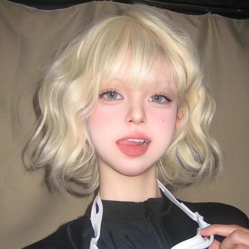Kurze weiße gelockte Lolita-Perücke für Damen – Modische, jugendliche und süße Simulationshaarabdeckung