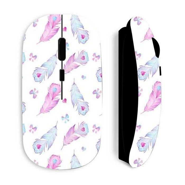 Souris sans fil - MANIACASE - Noir - Plumes et coeurs rose et bleu - 2 piles AA - Optique