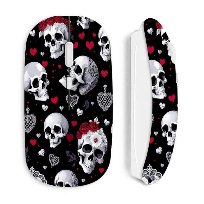 Souris sans fil - MANIACASE - Tête de mort et coeurs - Blanc - Optique - 70 g