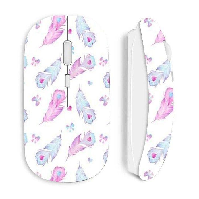 Souris sans fil - MANIACASE - Plumes et coeurs - Blanc - Optique - 70 g