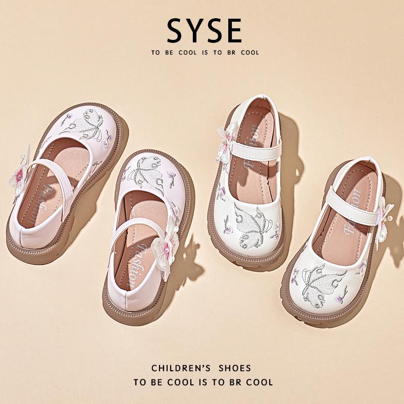 Bestickte Hanfu Leder-Ballerinas für Mädchen mit Klettverschluss für Herbst 2025 - Prinzessinnen-Stil für mittlere und große Kinder