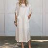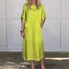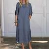 Modisches Damenkleid mit Rundhalsausschnitt, Farbe, locker, lässig, kurzärmelig, Tasche, Baumwolle und Leinen