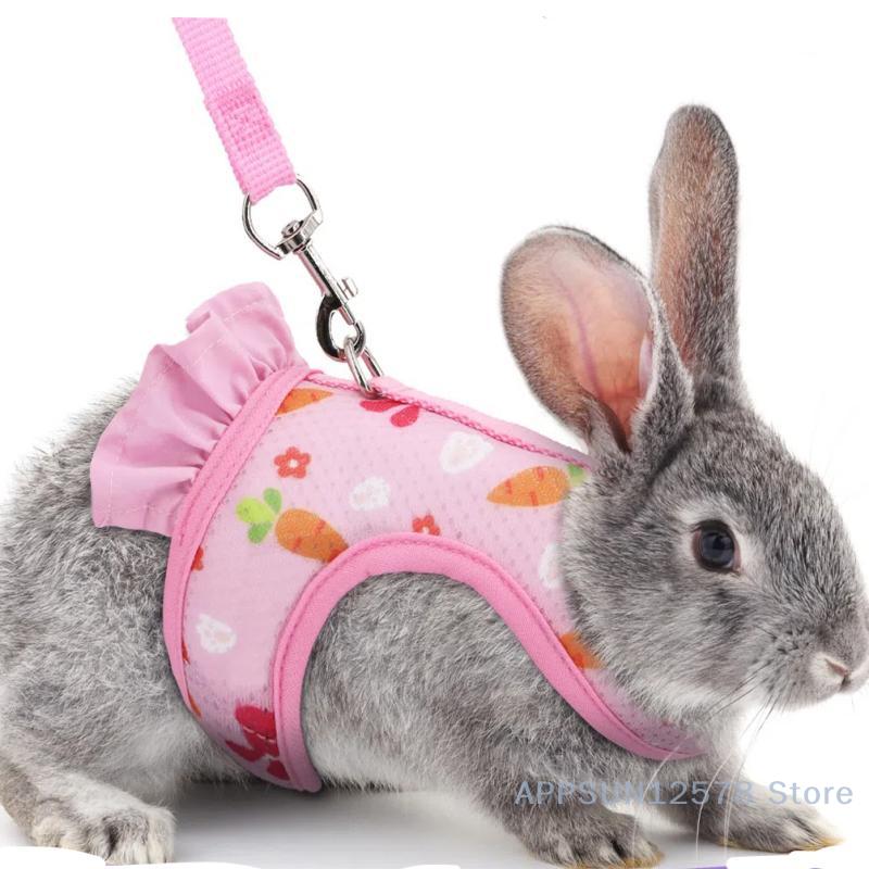 Süßes verstellbares Kaninchengeschirr Outdoor-Leinenverschluss Atmungsaktiver Netz-Westenrock Kaninchen Meerschweinchen Kleintier Zuggeschirr Anzug