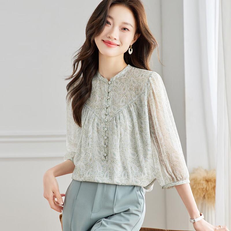 Srcr Elegante Damenbluse aus 100% Maulbeerseide mit 3/4-Ärmeln