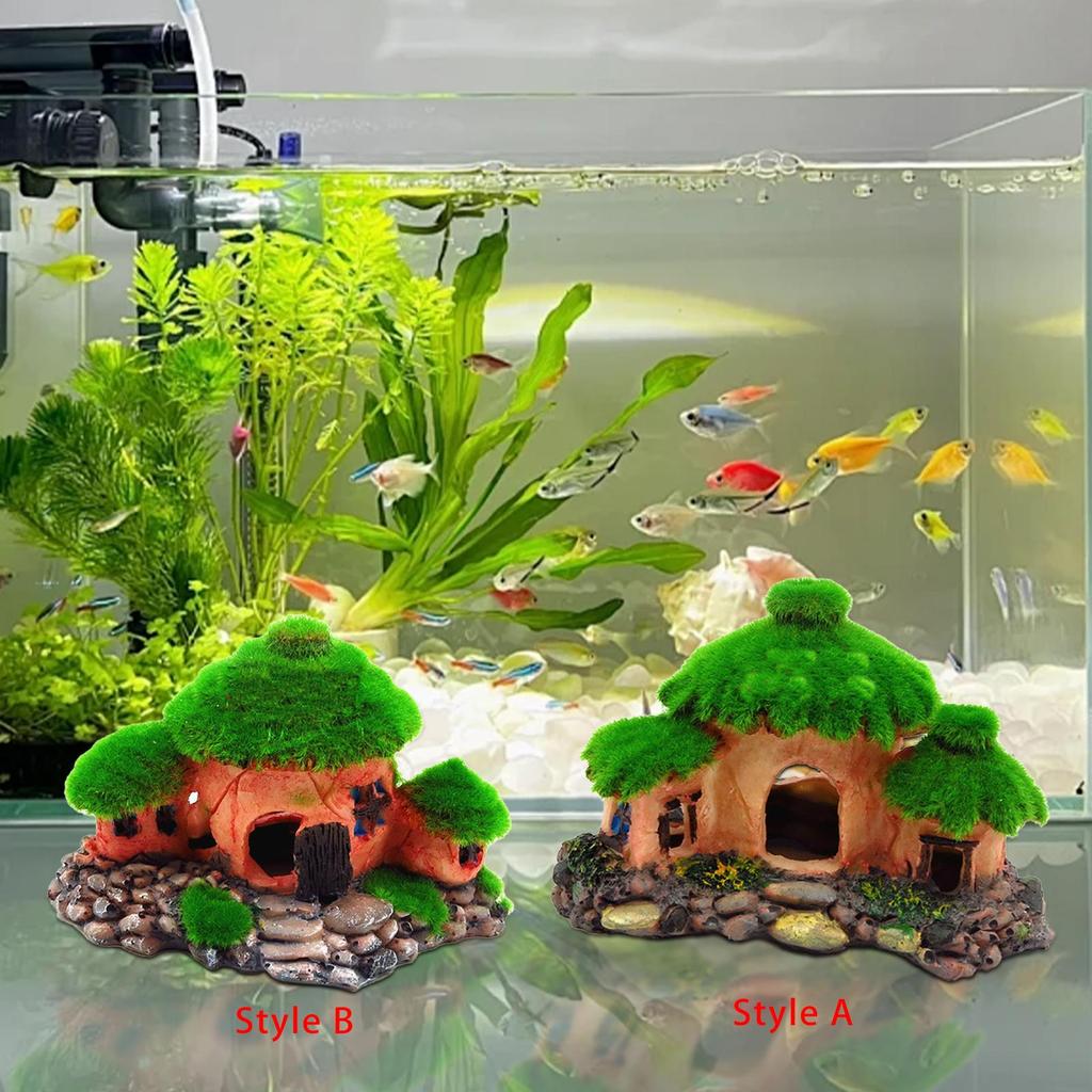 Dekorierte Mooshütte Harzdekoration Aquarium-Dekoration für Betta Aquascaping Kletterlandschaft
