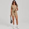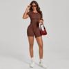 Europäischer & Amerikanischer 3D Ästhetischer Kurzarm Jumpsuit mit Offenem Rücken für Yoga und Fitness