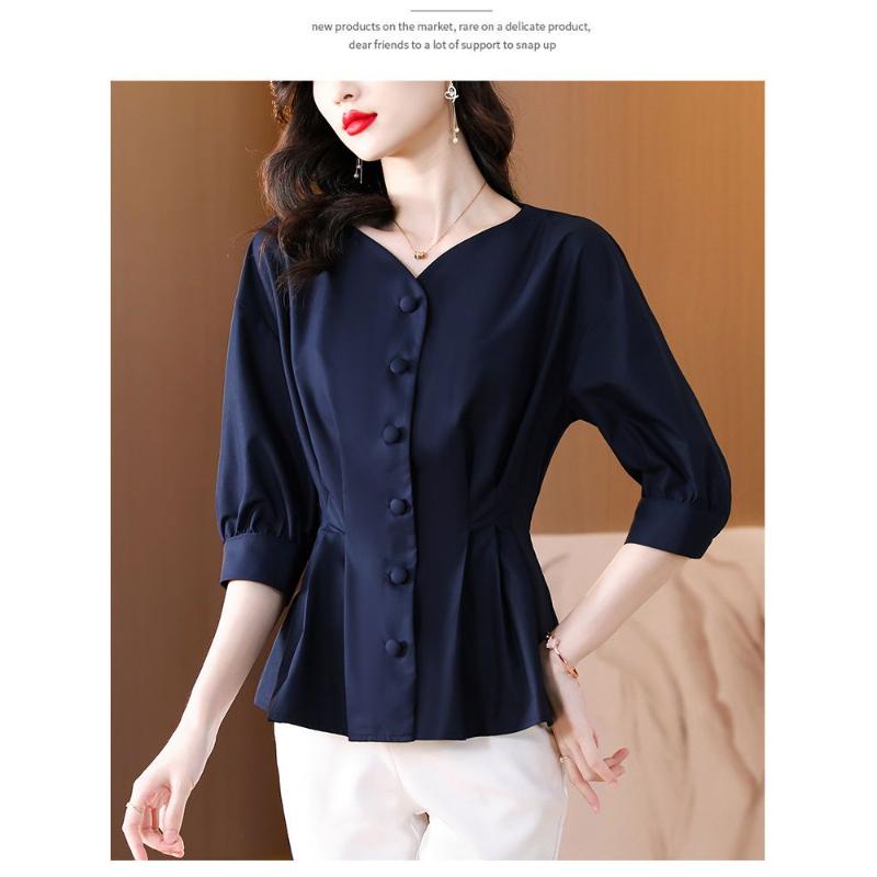 High-end Fashion Women's V-Neck Peplum Blouse 3/4 Sleeve Button-Up Casual Office Top