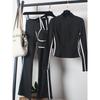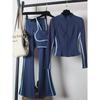 Damen Yoga Sportbekleidungsset: Hochtaillierte Schlaghosen, Schlankmachend, Tanz, Laufen, Reißverschluss, Dreiteilig für Herbst/Winter.
