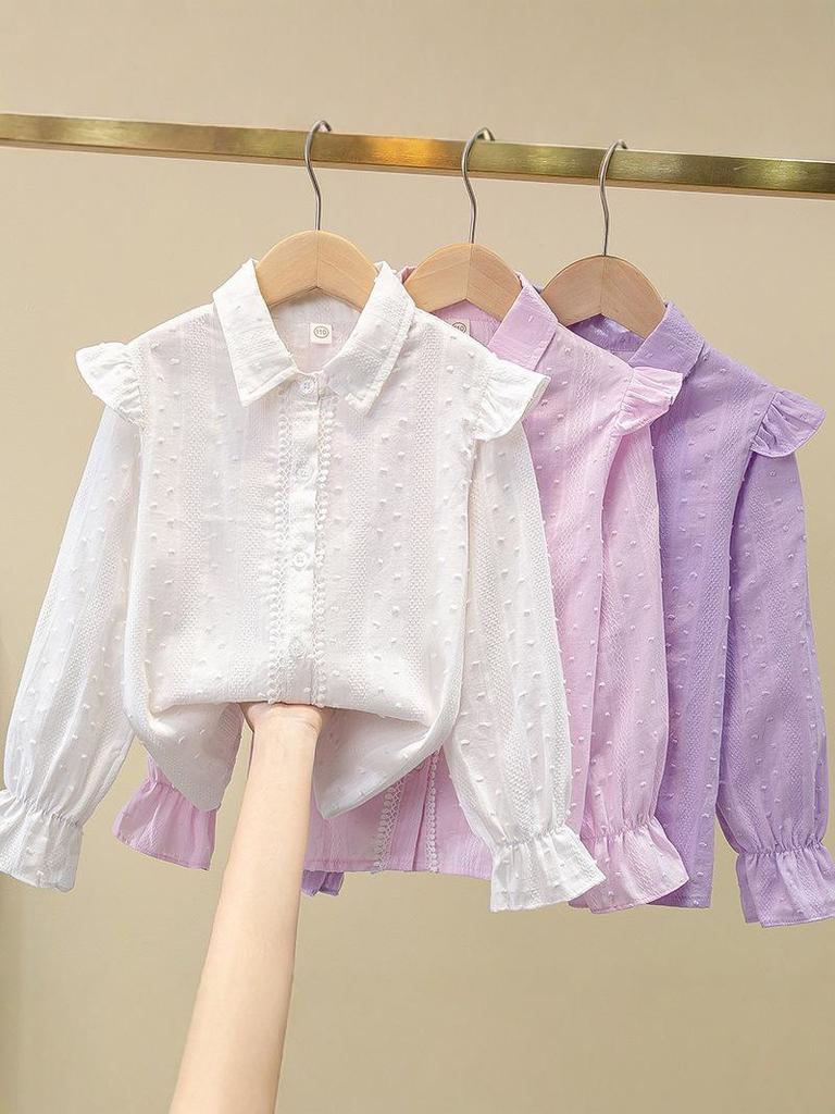 Mädchen-Langarm-Schulhemd aus weißer Baumwolle: Stilvolles, vielseitiges Frühjahrs-/Herbstoberteil