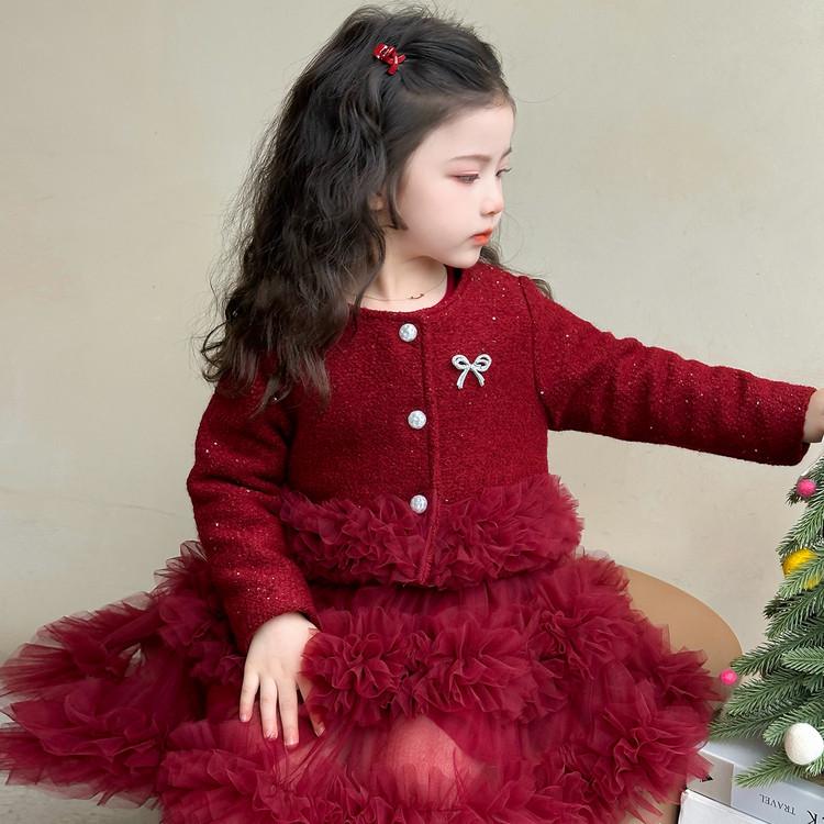 Meng Tangtang 2025 Herbst/Winter Mädchen Coco Stil Zweiteiliges Kleid Set mit Vielseitigem Gaze-Rock