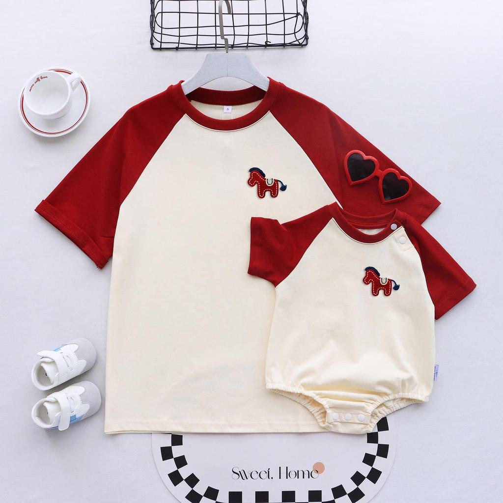 Celebrate your family with these stylish parent-child matching t-shirts, designed especially for mothers and sons. Featuring intricate embroidery inspired by the Year of the Horse, these tees offer a unique and meaningful way to connect. Crafted from high-quality cotton, they provide a comfortable fit for both mom and son, making them perfect for casual outings or special occasions. Embrace the blend of tradition and modern style with these charming embroidered t-shirts.
