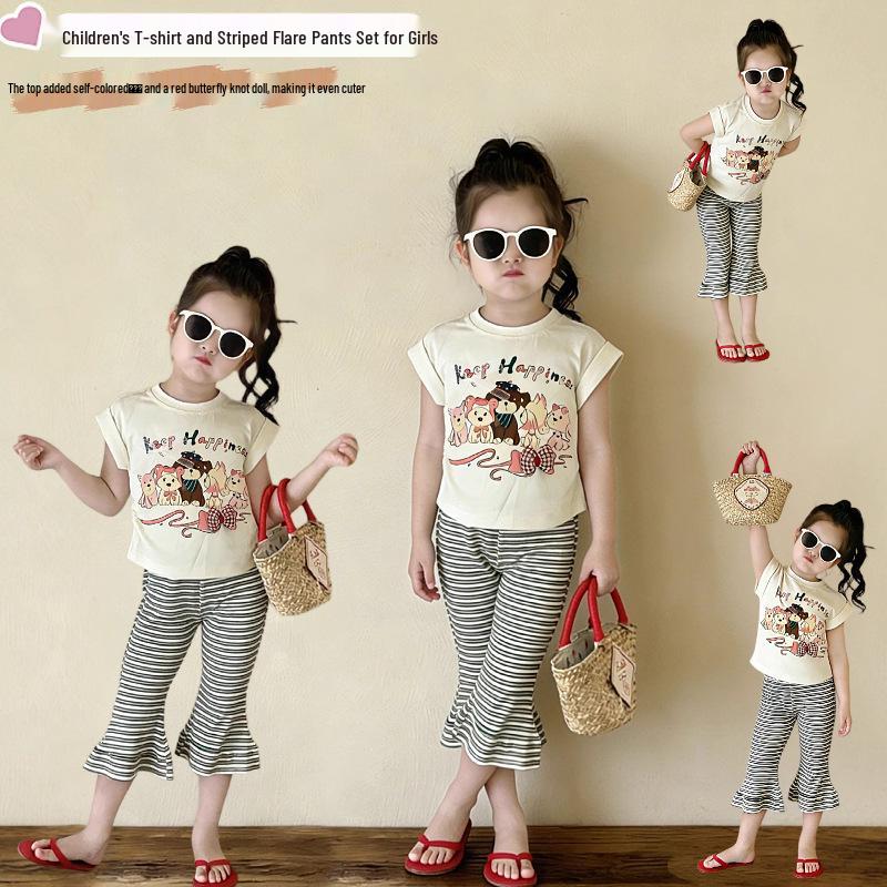 2025 Stilvolles Sommer-Zweiteiler-Set für Mädchen: Süßes T-Shirt & Schlaghosen